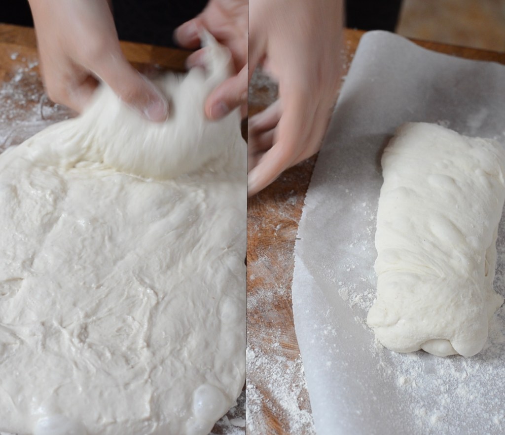 Těsto na ciabattu obsahuje velký podíl vody, to znamená, že je vysoce hydratované. Tento recept obsahuje 80% hydratace, stejné množství obsahuje třeba také těsto na focacciu. Jenže těsto na focacciu jen tak vylejeme do formy a necháme být, ale po ciabattě chceme, aby se tvářila jako chléb, tedy měla nějaký tvar.